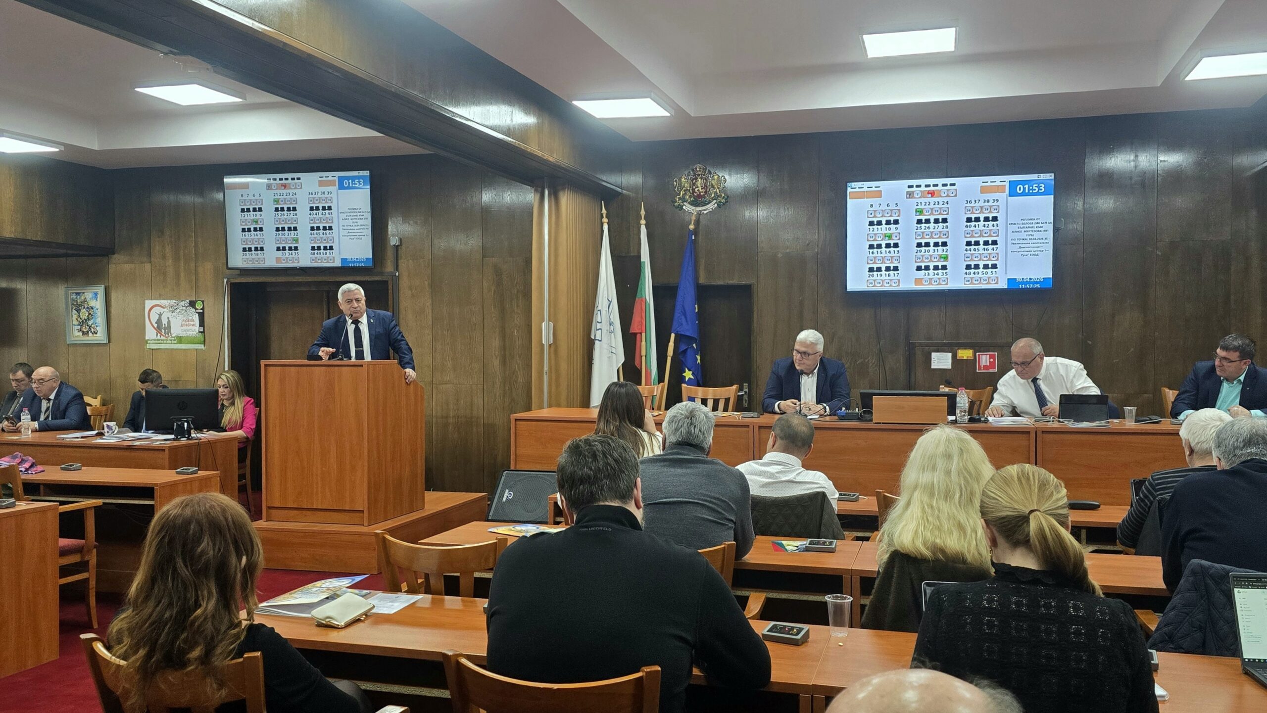 33-ото заседание на местния парламент продължи по дневния ред, включващ 38 докладни, питания на общински съветници към общинската администрация и заявено изказване на гражданин.