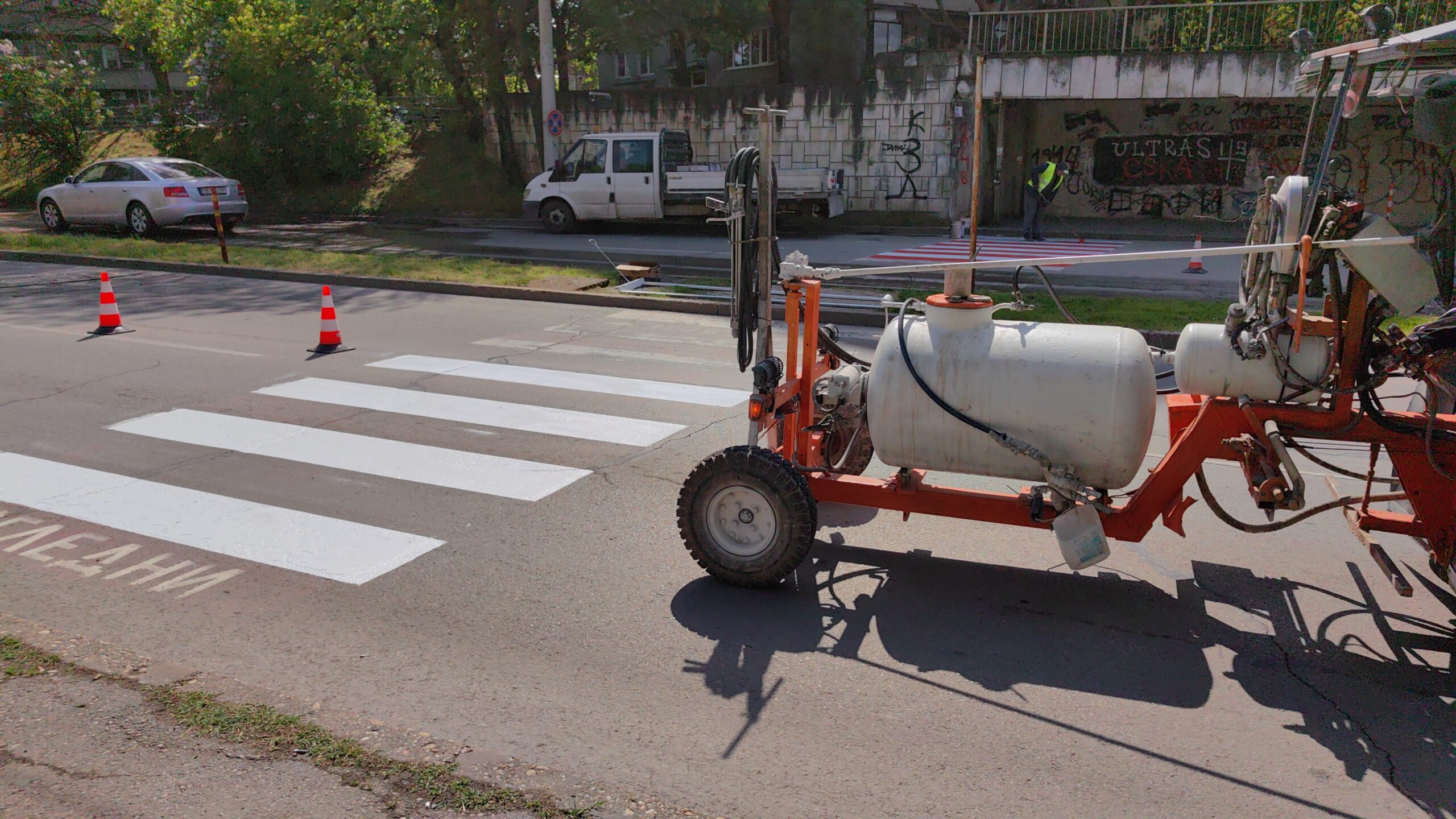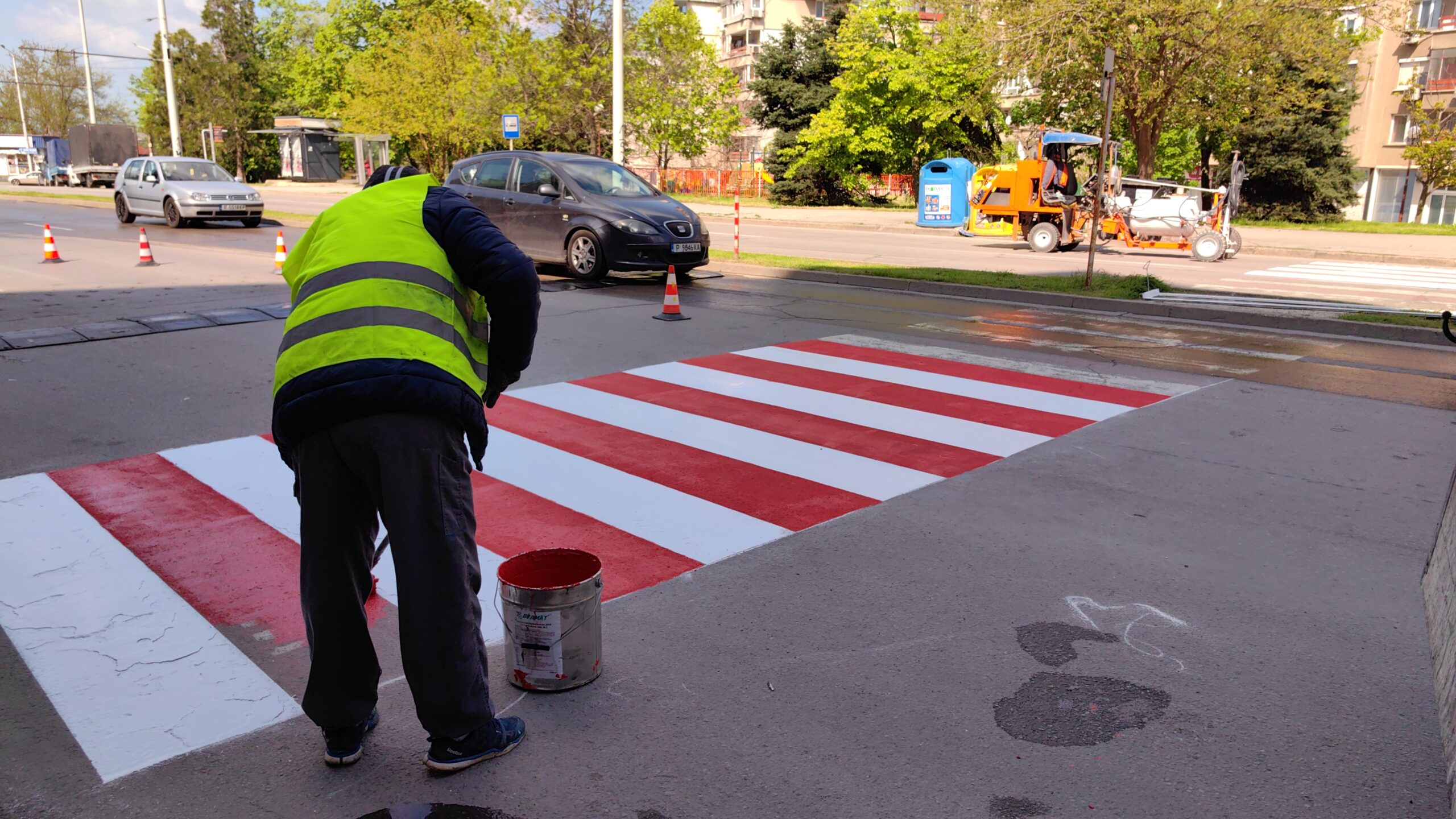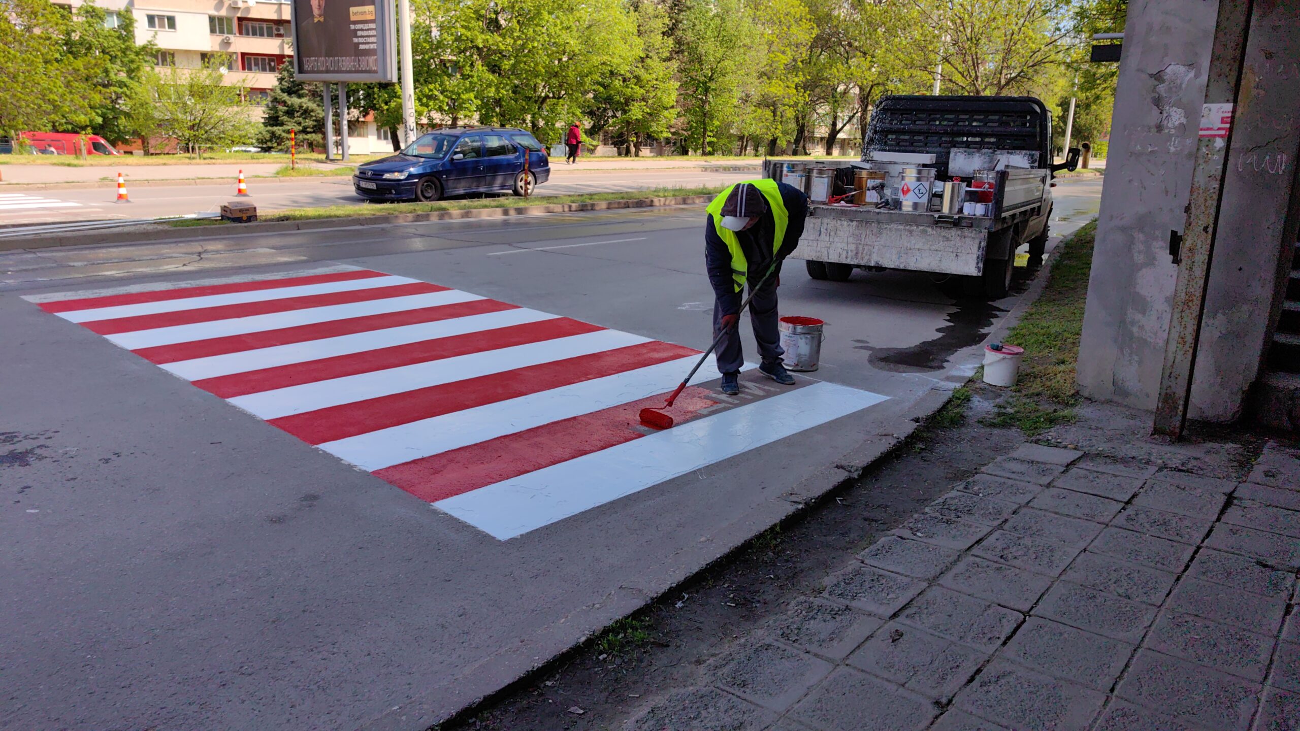 Пешеходните пътеки се маркират със студен пластик, който има висока износоустойчивост и висок коефициент на сцепление. Очакванията се маркировката да издържи по-дълго време, а не да се изтрие сравнително бързо.